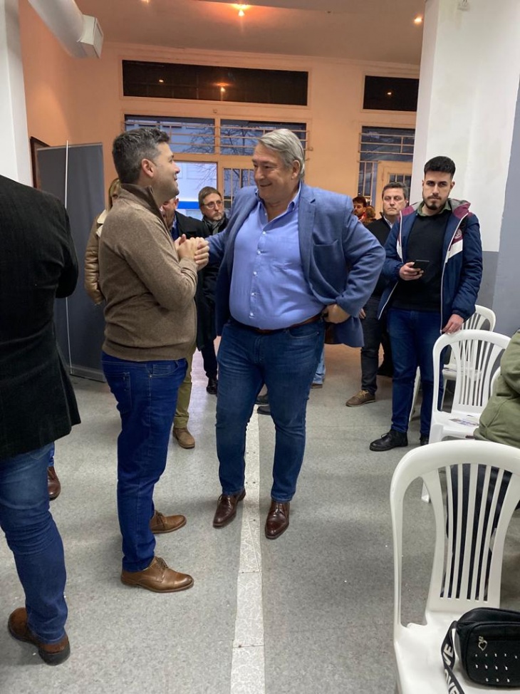 Los funcionarios llegaron pasadas las 18 horas al local del FR ubicado en calle 51 entre 8 y 9 y fueron recibidos por el titular de la CNRT José Arteaga, el diputado provincial Jorge “Tachu” Malpeli y el dueño de casa, el concejal Facundo Albini.