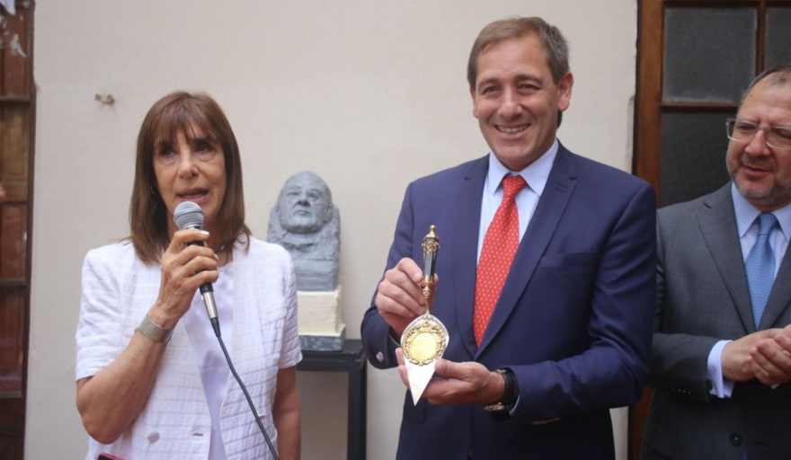 En la ceremonia la heredera de Favaloro entregó al intendente Garro la pluma con la que Dardo Rocha firmó las actas de fundación de la ciudad y la pala con la que se simbolizó la construcción de la ciudad.