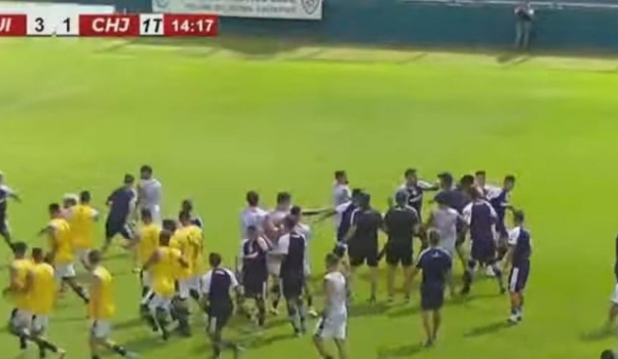 Durante un partido amistoso entre Quilmes y Chacarita en el Estadio Centenario los jugadores se agarraron a piñas disputando una batalla campal y debió suspenderse el encuentro.