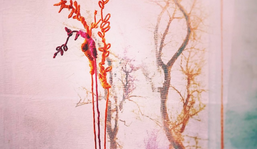 A través de "Fronda", las cuatro artistas dieron nacimiento a un "ecosistema arbóreo" imaginado, mediante la construcción de un bosque de papel calado, intervenido por transferencias fotográficas y acuarelas, cuyas partes están conectadas por diversas técnicas textiles.