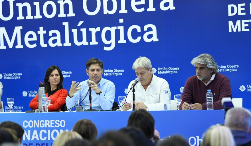 El gobernador de la provincia de Buenos Aires, Axel Kicillof, participó esta tarde junto al secretario general de la Unión de Obreros Metalúrgicos (UOM), Abel Furlán, del acto de cierre del Congreso Nacional de Delegadas y Delegados Metalúrgicos.