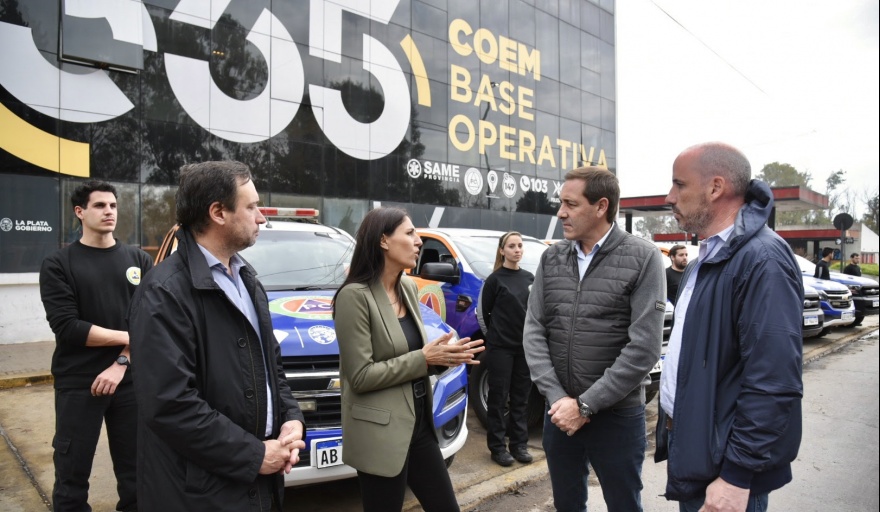 El intendente de La Plata, Julio Garro, presentó este martes nuevas camionetas para el Comité Operativo de Emergencias Municipal (COEM).