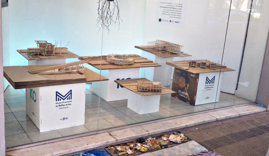En la vidriera del museo se podrá observar la muestra ”AGUA” realizada por el taller de arquitectura de la Universidad Nacional de La Plata, que recupera nuevos abordajes desde la arquitectura y el arte en relación al problema actual del agua.
